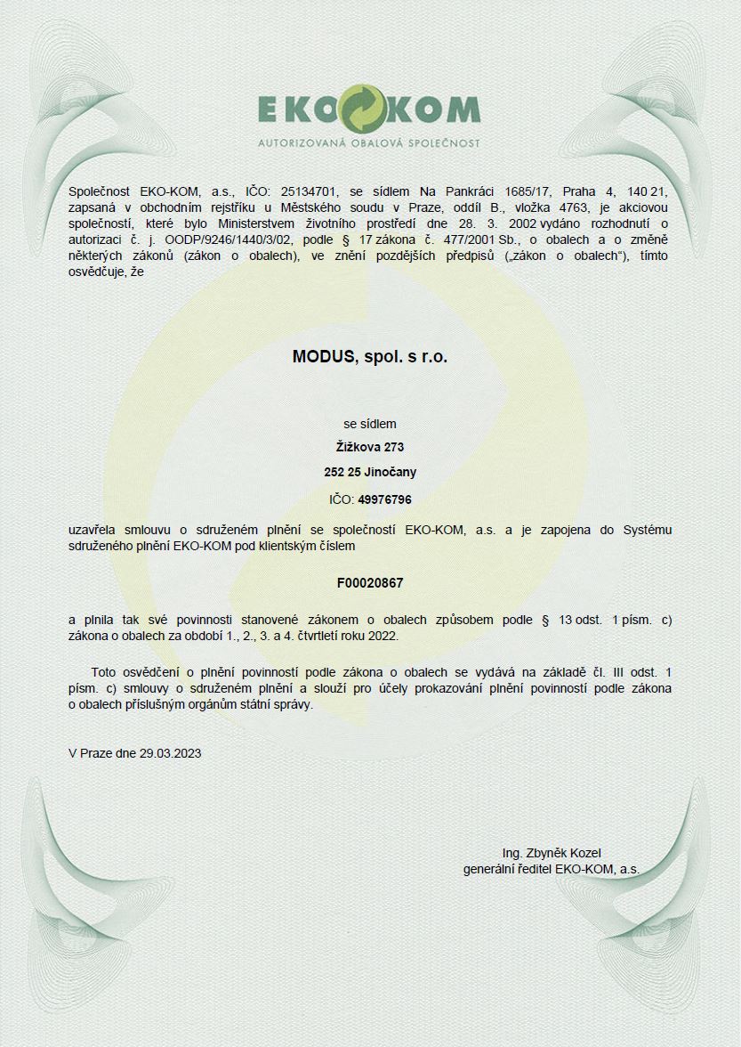Like a one of first companies in Czech Republic we take a certifikate AEO - Authorised Economic Operator, no. CZ AEOF 0800I1.