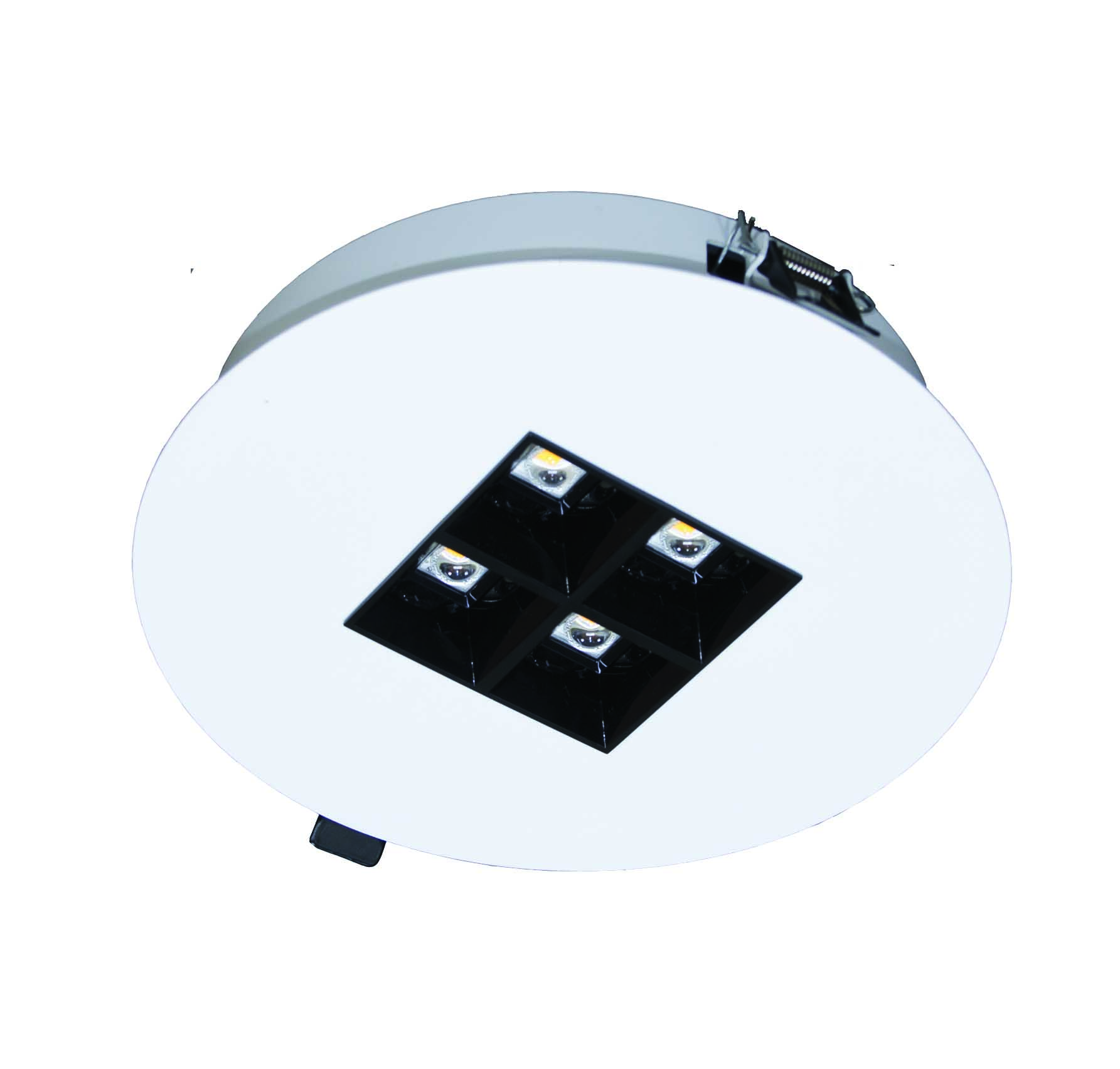 Light fitting SPMDO 1000, recesed, white body ø210mm, cut out 190mm, LED 840, 1x4 black optic, lenses 50°, DALI