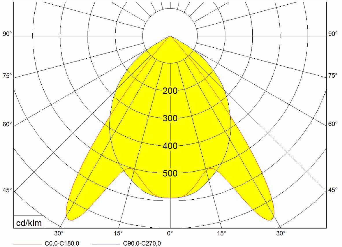 KV - double parabolic louvre category C2 of highly polished aluminium, with opal cover of LED modules
