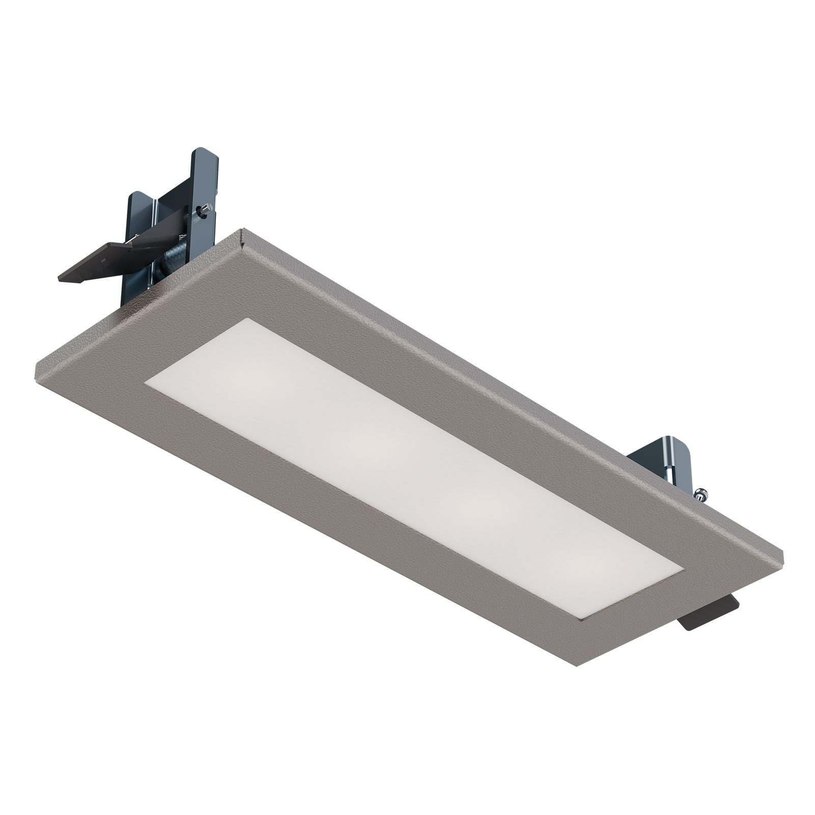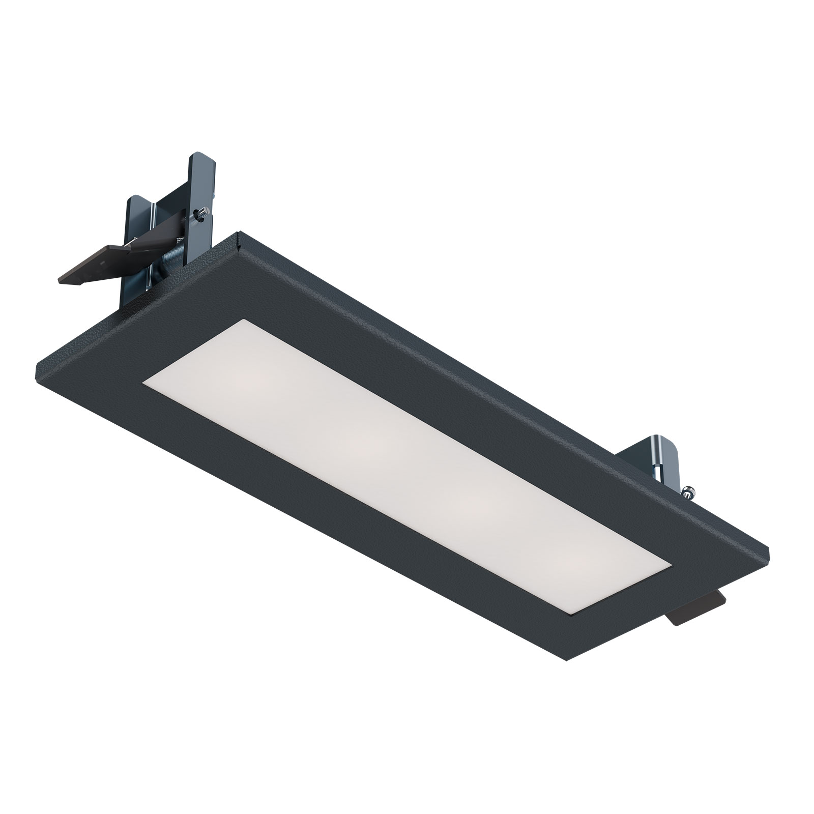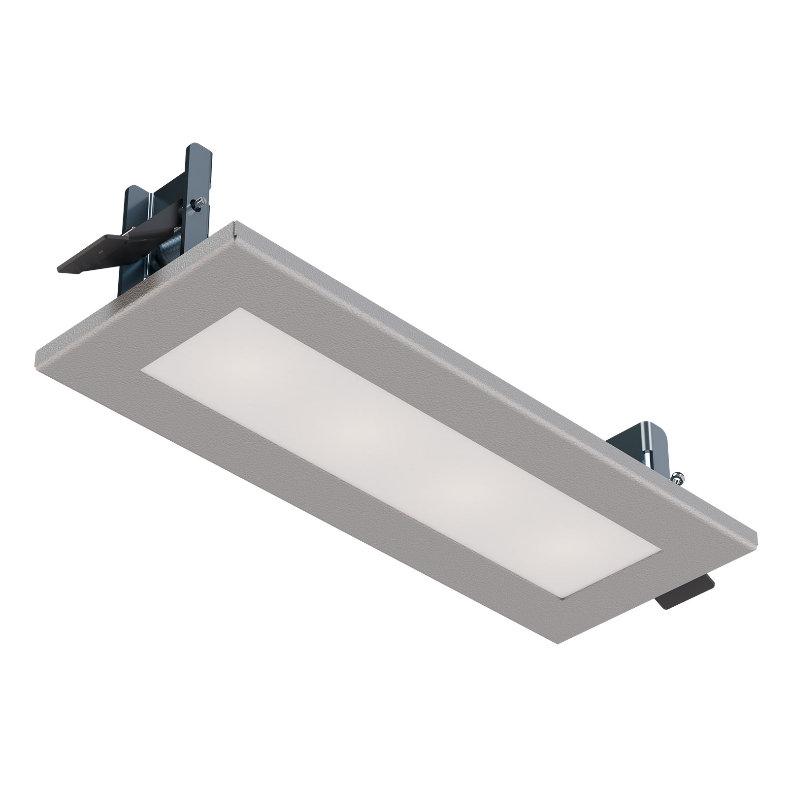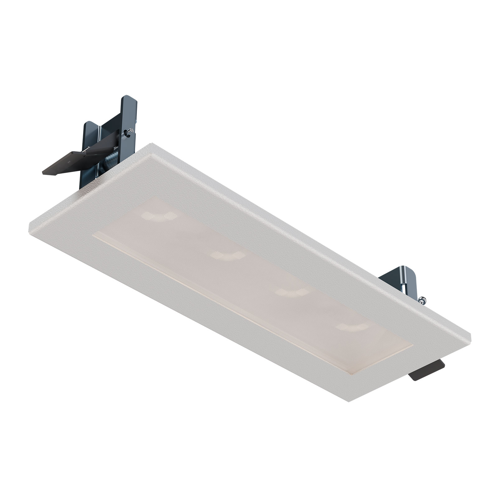 The luminaire is suitable for recessed installation in ceilings up to 16 mm thick and is available with ON/OFF, 1–10 V, or DALI power supply.