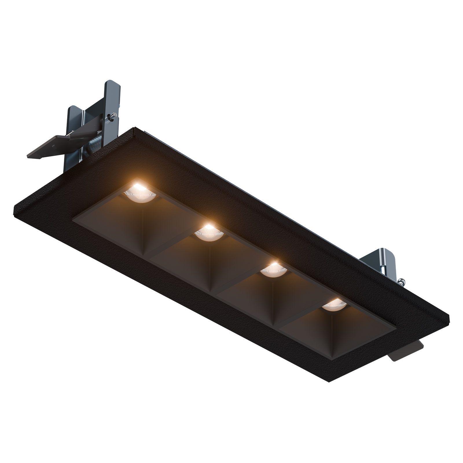 MODUS DM1500, recessed, black body, rectangle 75x195mm, 1x4 black matt optic, lenses 80°, 1x4 LED 840, BT driver