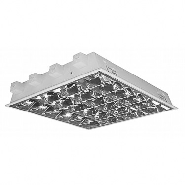 Recessed light fitting for instalation into false ceiling with visible supporting structure (600x600 / 625x625 modules) or gypsum plasterboard.