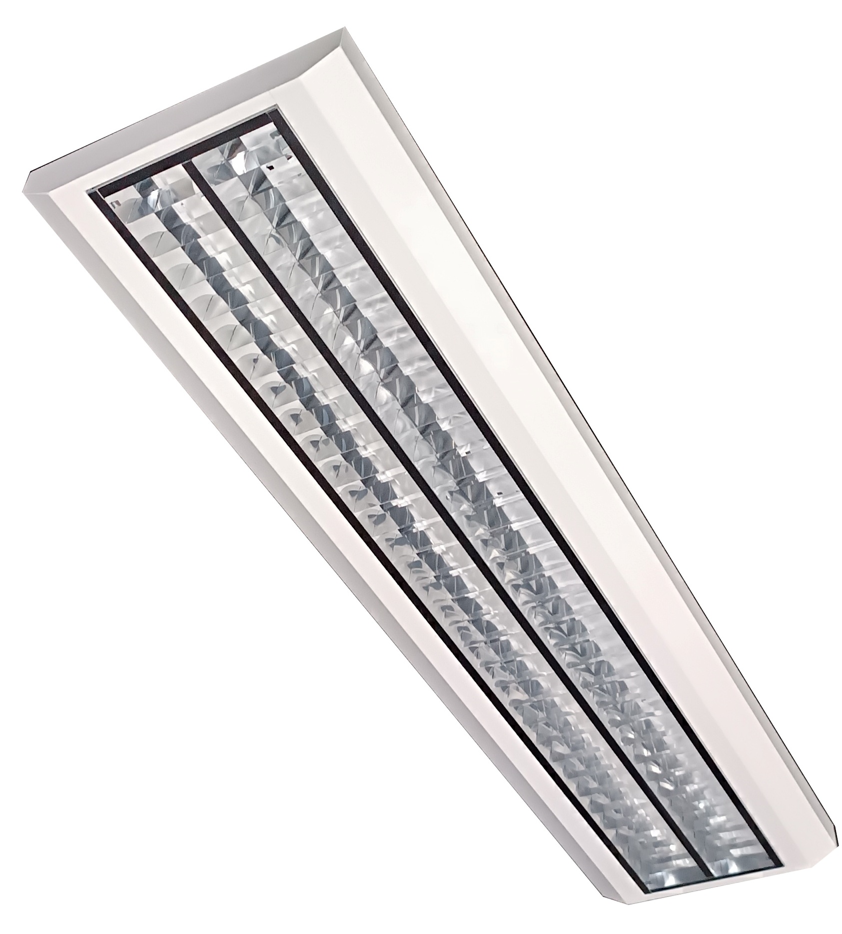 KVM - double parabolic louvre category C2 of mat aluminium, with opal cover of LED modules.