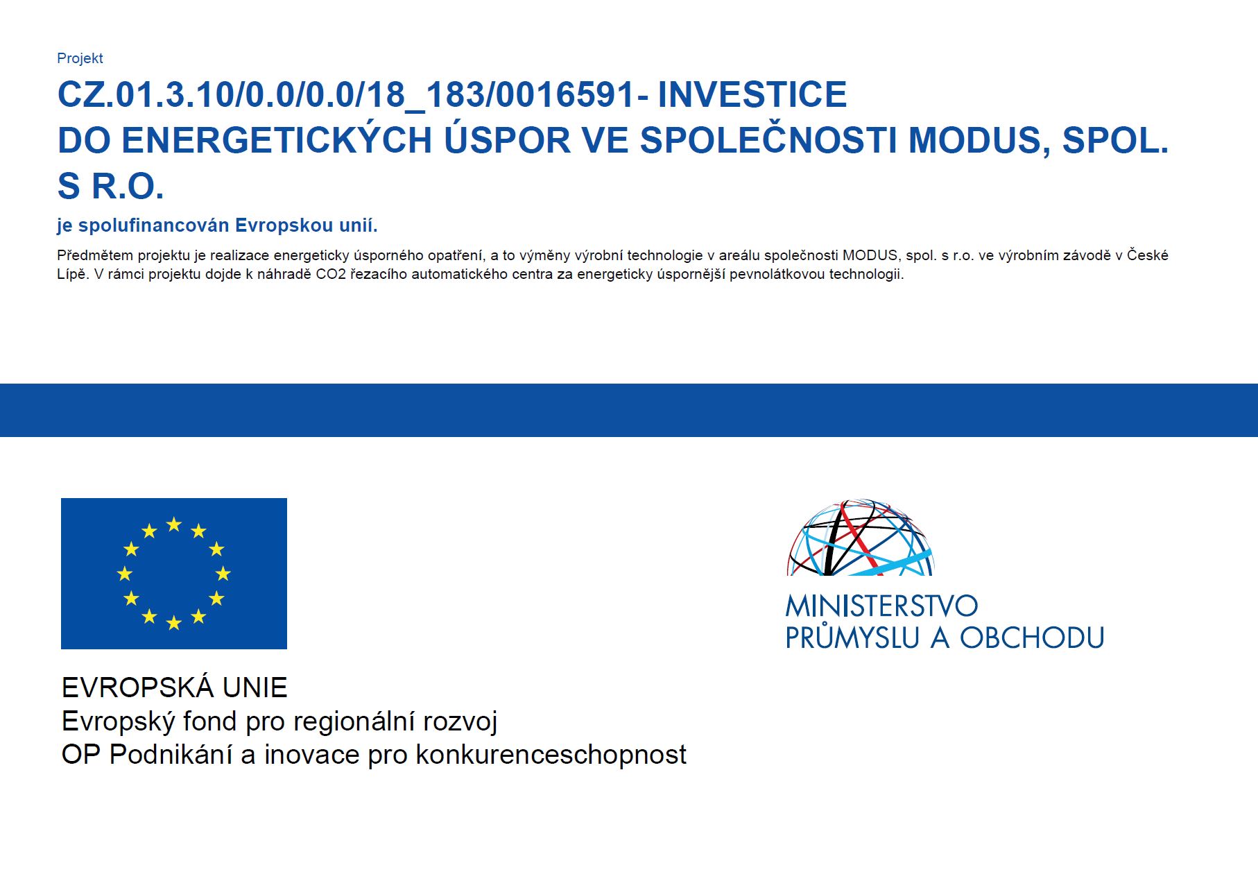 MODUS > O nás > Společnost > Dotační projekty > Investice do energetických úspor