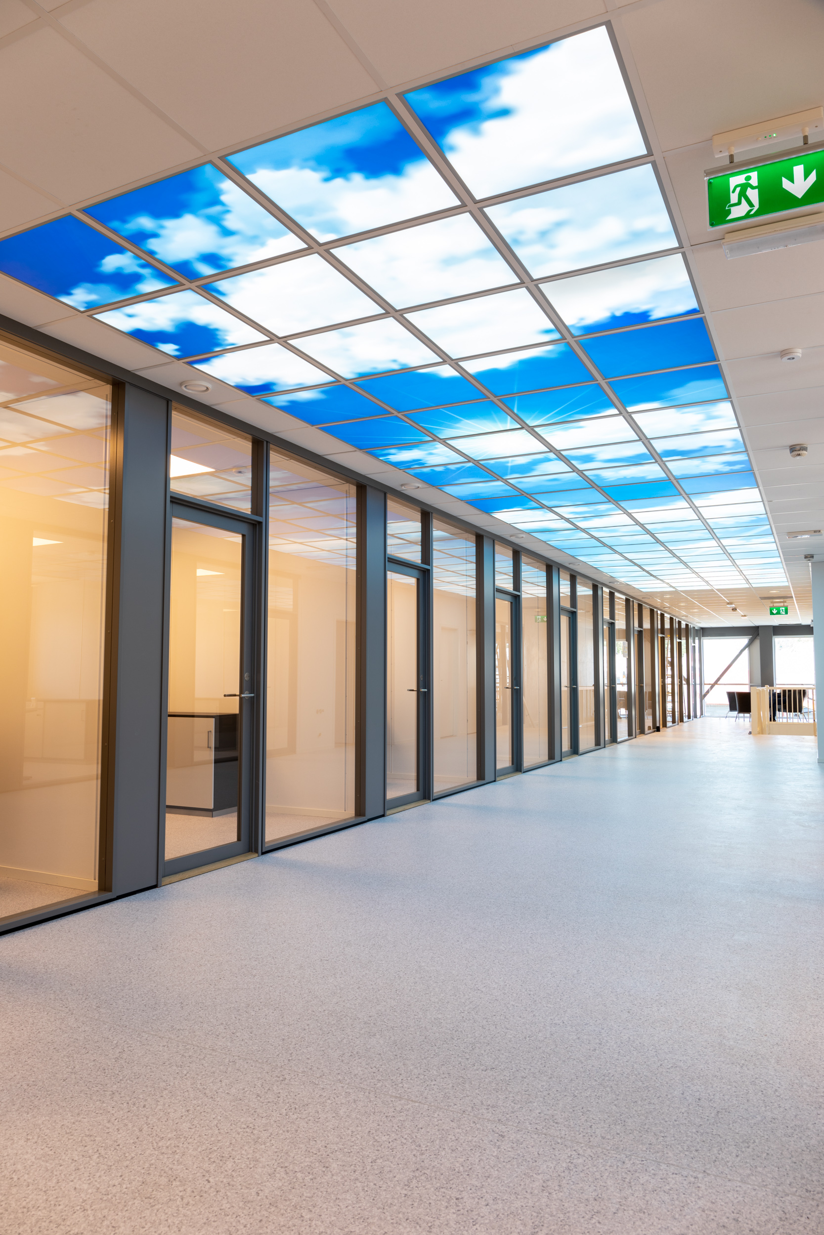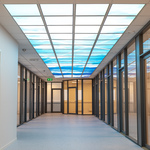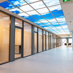 Investor chtěl budoucí nájemníky překvapit něčím zajímavým, a tak se nespokojil použitím klasických vestavných svítidel ve vstupní chodbě - využil nabídky našich dekoračních LED svítidel MODUS Q DECO SKY. A to dokonce motivem zatím největším - nebe se skládá z 80 jednotlivých LED panelů o rozměru M600.