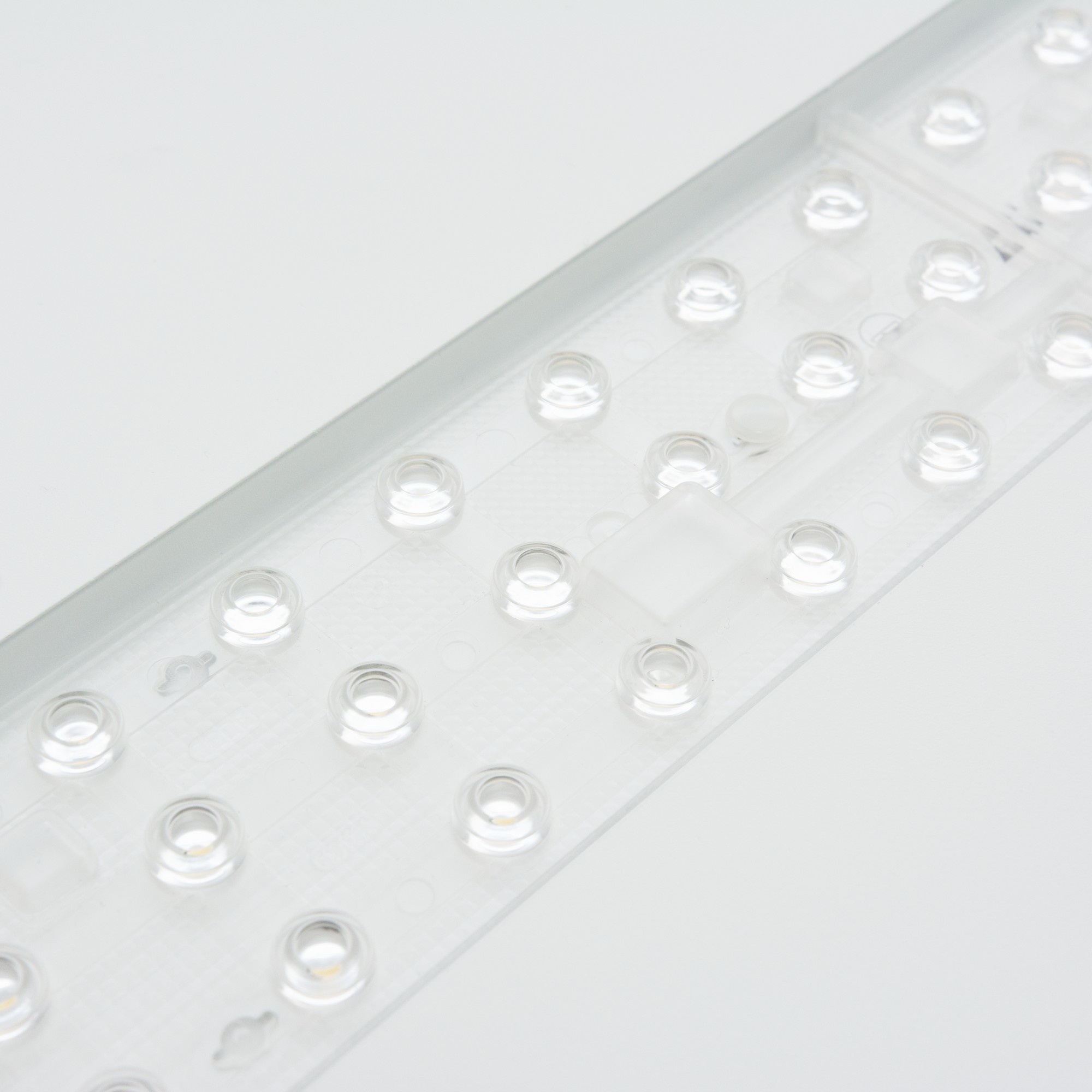 Hlavním prvkem svítidla je plastová PMMA optika, která se stará o perfektní distribuci světelného toku - svítidlo se tedy vyznačuje nízkým oslněním UGR a vysokou učinností (až 150 lm/W) ze svítidla.