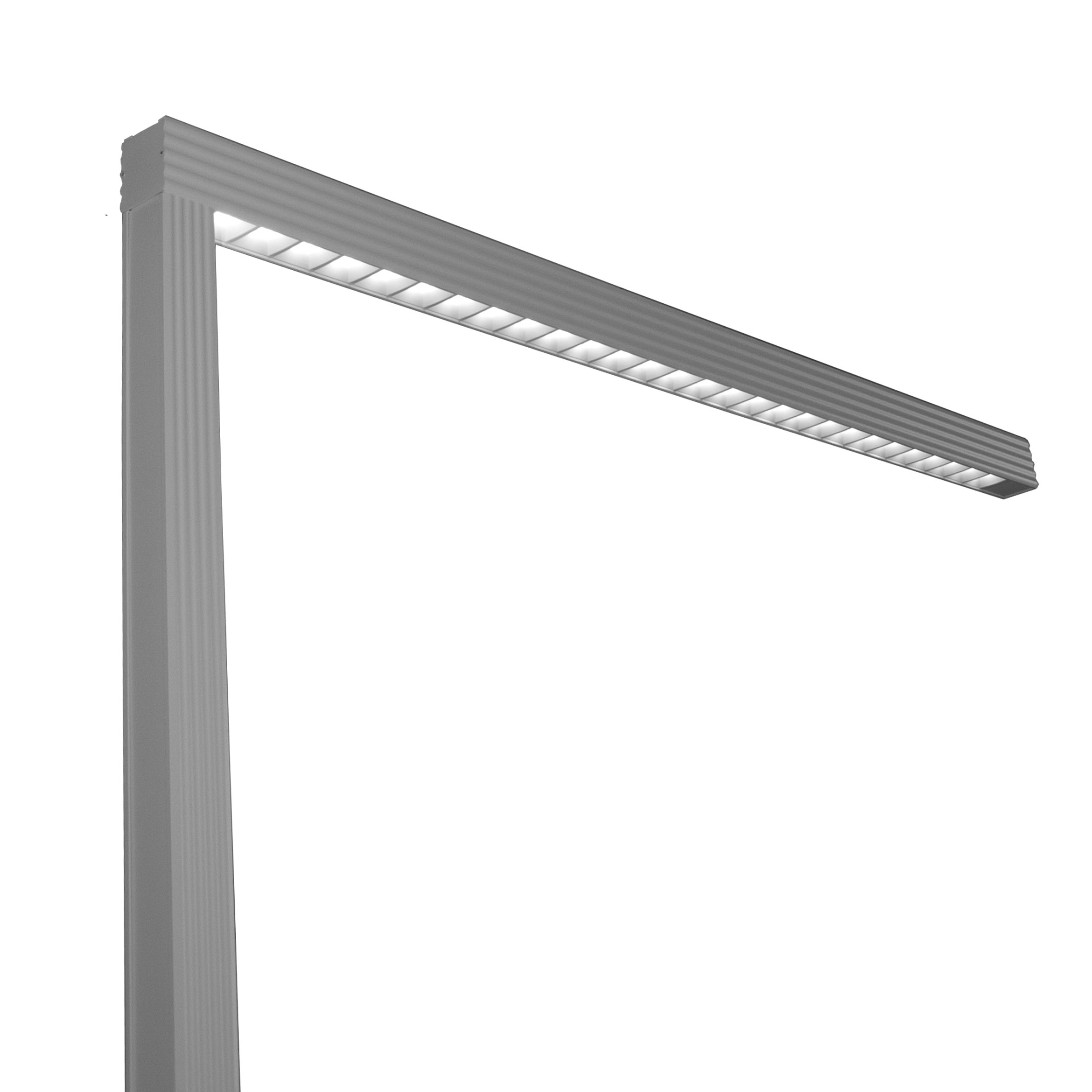 Tělo svítidla tvoří hliníkový profil s pevnou ocelovou základnou, což podtrhuje jeho technicky čistý a profesionální charakter. Ovládání je řešeno intuitivně pomocí tlačítek, která umožňují regulovat intenzitu světla i poměr přímé a nepřímé složky (dle varianty výrobku)