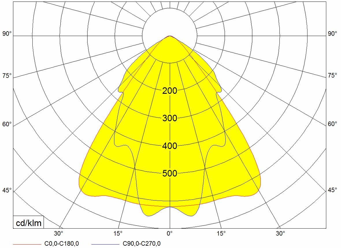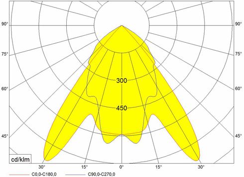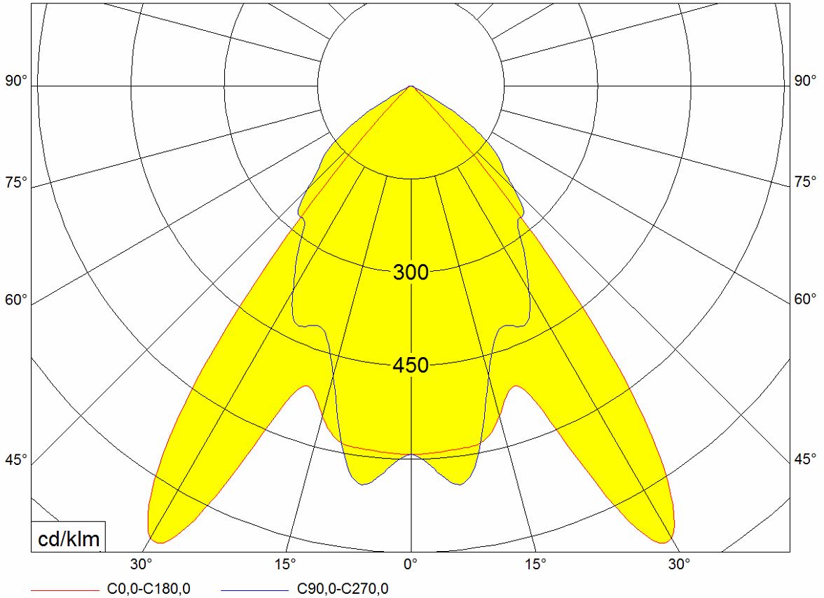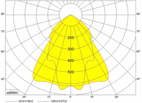KV - LED modul je zakryt opálovým krytem a doplněn leskou mřížkou s dvojitou parabolou - díky dvojité optice je zaručeno velmi nízké oslnění.