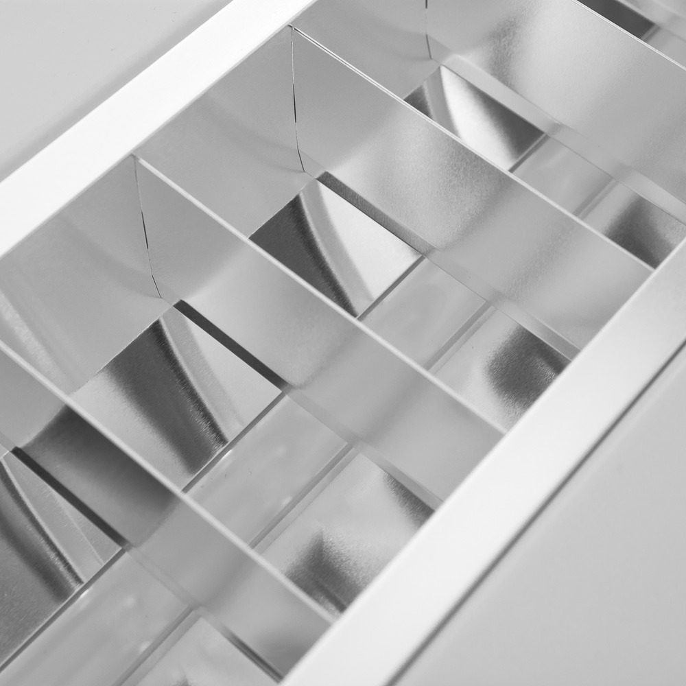 Oba systémy mají stejnou účinnost, tzn. světelný tok svítidla a příkon s leštěnou a matnou mřížkou je shodný