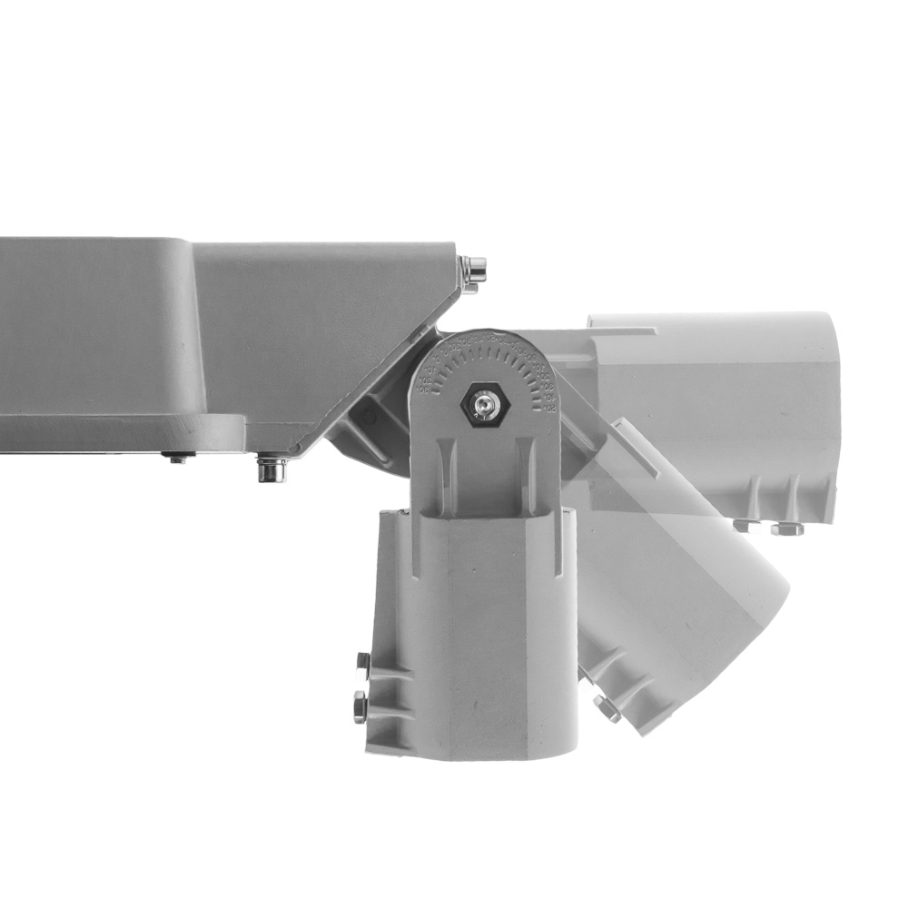 Svítidlo s integrovanou stavitelnou přírubou pro montáž na stožár nebo výložník o průměru 60 mm.