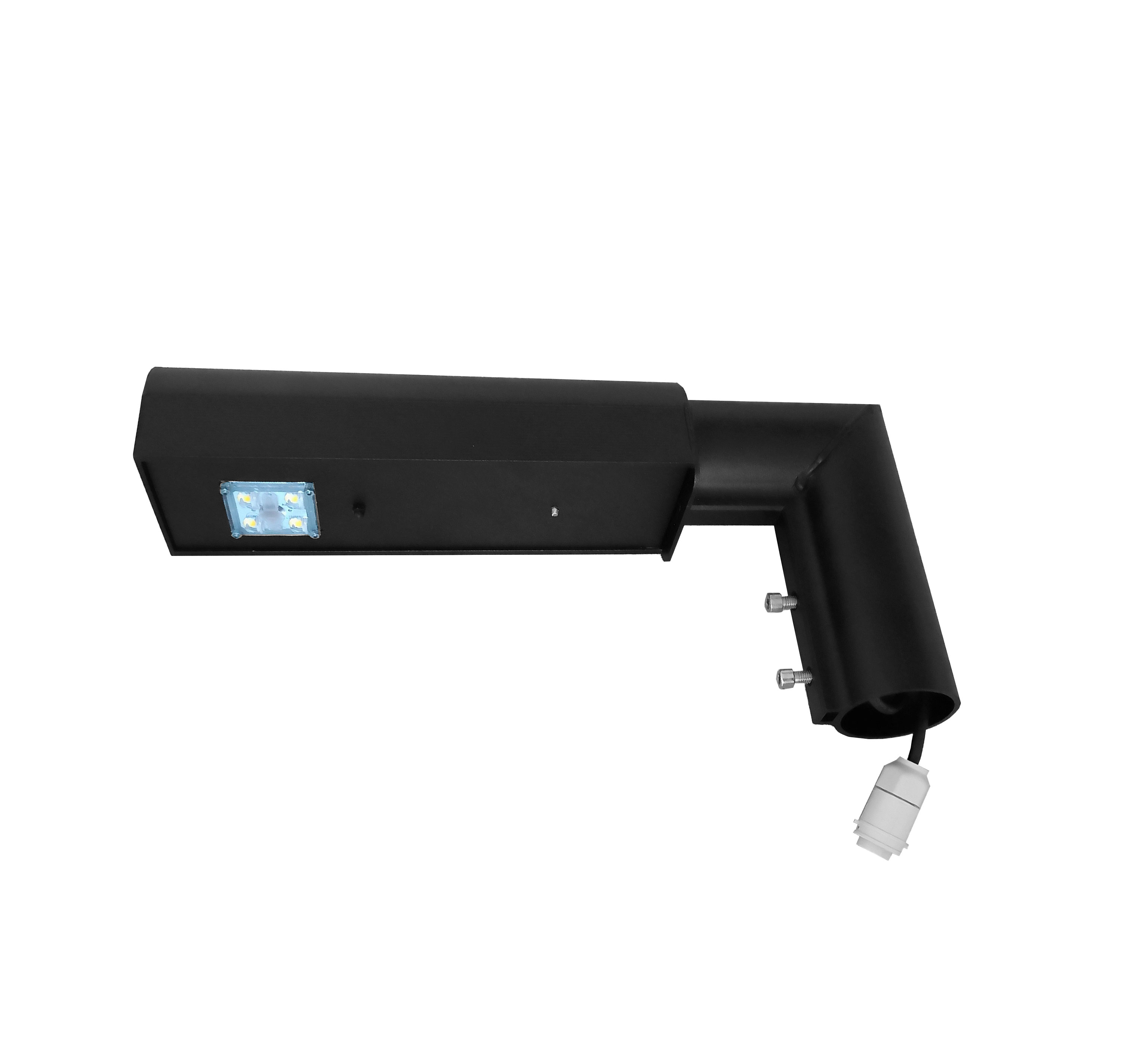Svítidlo z práškově lakovaného hliníku v černé (volitelně šedé) barvě určené primárně pro osvětlení chodníků a cyklostezekurčené pro montáž na kolmou sadovou přirubu nebo výložník o průměru 60mm.