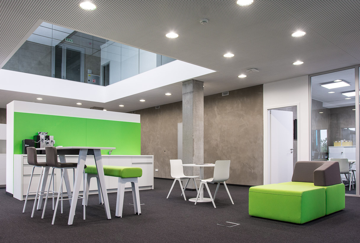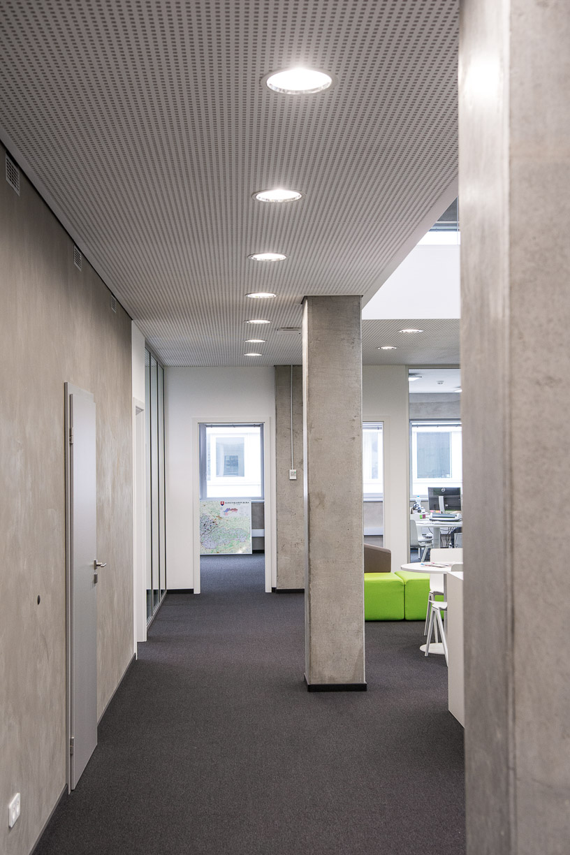MODUS SPMI je použito na chodbách a recepci. Svítidla MODUS QP jsou použita v kancelářích a jednacích místnostech. V případě svítidel QP je plně využito jejich schopnosti přisazené instalace pomocí "driver boxu" - mezi svítidlem a stropen je 4cm volný prostor - efekt levitujícího svítidla.